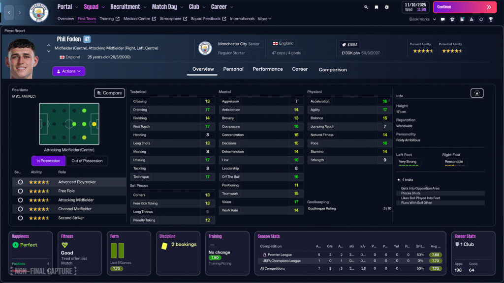 Por ejemplo, si tenés un lateral como O’Reilly en el City, vas a notar cómo arranca como lateral tradicional y, conforme avanza la jugada, se mete hacia el medio como mediocentro defensivo. Es oro puro para ajustar roles y entender por qué tus transiciones funcionan… o no.