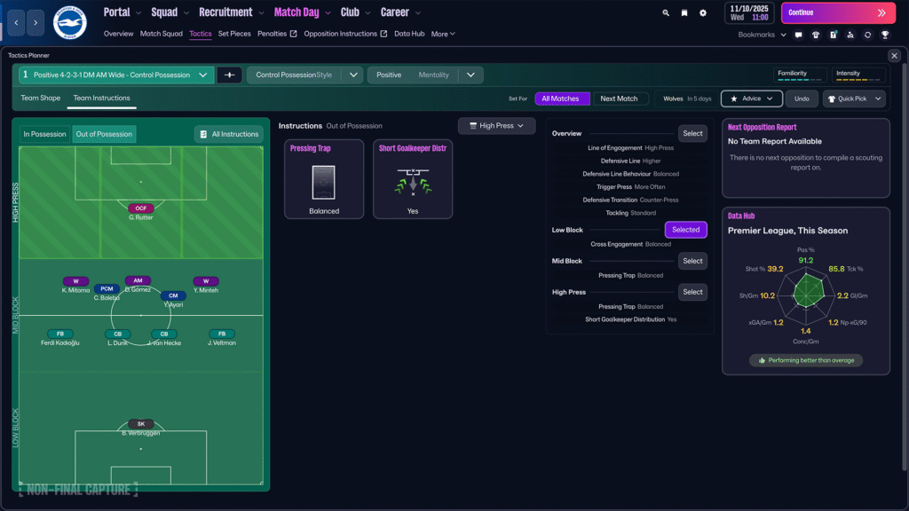 El proceso de creación táctica sigue siendo el mismo, pero con una capa nueva de libertad. Podés experimentar todo lo que quieras —desde extremos que atacan por una banda y retroceden por la otra, hasta mediocentros que se transforman en centrales al replegar—. El cuerpo técnico te avisará si te pasás de rosca, pero como siempre, la última palabra la tenés vos.